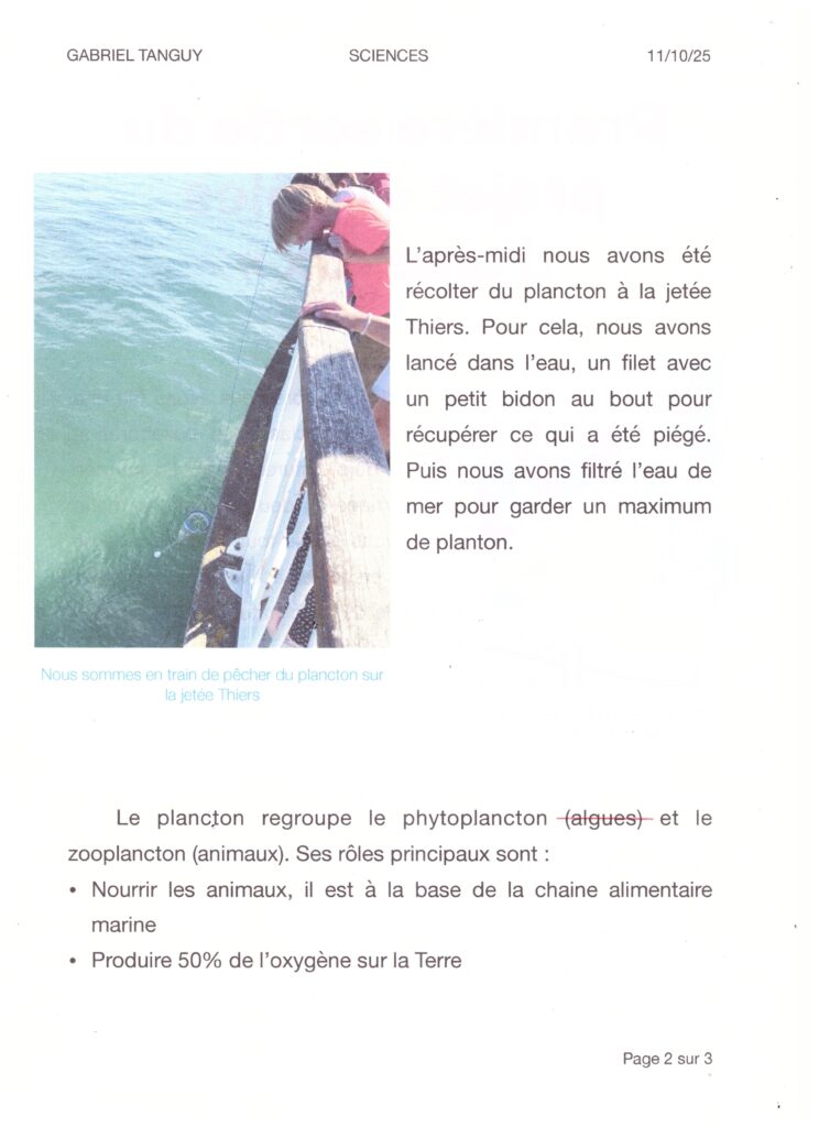 Dans ce cadre les élèves de 6B sont sortis le 02/10/2025 à la jetée Thiers.