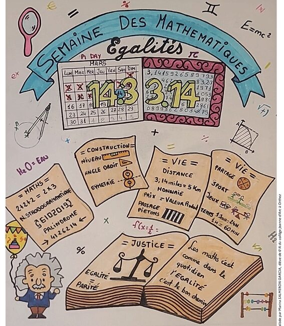 « Alors que les élèves de 4ème viennent de passer leur passeport EDUCFI (éducation économique, budgétaire et financière) la semaine des Mathématiques commencent 🙂 Le thème de cette année est « égalité ». A cette occasion, le hall s’est transformé pour accueillir les différents travaux des élèves. Dès demain, 2 collégiens et 2 lycéens participeront à Bègles à la demi-finale du championnat des jeux Mathématiques et logiques (FFJM). Bonne chance à Léo (4ème), Lilou (3ème), Arthur (1ère) et Maxime (terminale)!!! La semaine sera chargée… Concours kangourou pour tous les niveaux, olympiades pour les élèves de 1ère, concours général pour ceux de terminale, sans oublier le rallye calcul@tice avec les 6ème et les élèves de CM2, débuté cette semaine avec ceux de l’école Ste Anne, qui se poursuivra avec l’école St Thomas et les écoles Ste Marie et St Vincent la semaine suivante… Bonne semaine des Mathématiques à tous 🙂 »