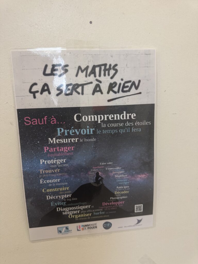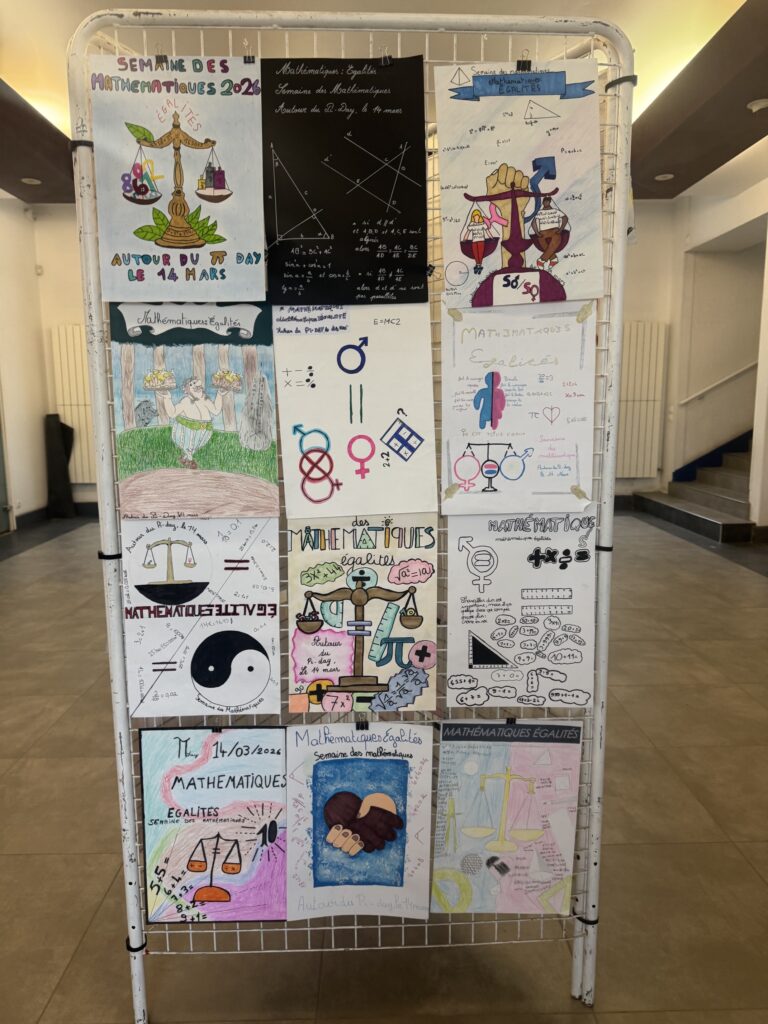 « Alors que les élèves de 4ème viennent de passer leur passeport EDUCFI (éducation économique, budgétaire et financière) la semaine des Mathématiques commencent 🙂 Le thème de cette année est « égalité ». A cette occasion, le hall s’est transformé pour accueillir les différents travaux des élèves. Dès demain, 2 collégiens et 2 lycéens participeront à Bègles à la demi-finale du championnat des jeux Mathématiques et logiques (FFJM). Bonne chance à Léo (4ème), Lilou (3ème), Arthur (1ère) et Maxime (terminale)!!! La semaine sera chargée… Concours kangourou pour tous les niveaux, olympiades pour les élèves de 1ère, concours général pour ceux de terminale, sans oublier le rallye calcul@tice avec les 6ème et les élèves de CM2, débuté cette semaine avec ceux de l’école Ste Anne, qui se poursuivra avec l’école St Thomas et les écoles Ste Marie et St Vincent la semaine suivante… Bonne semaine des Mathématiques à tous 🙂 »