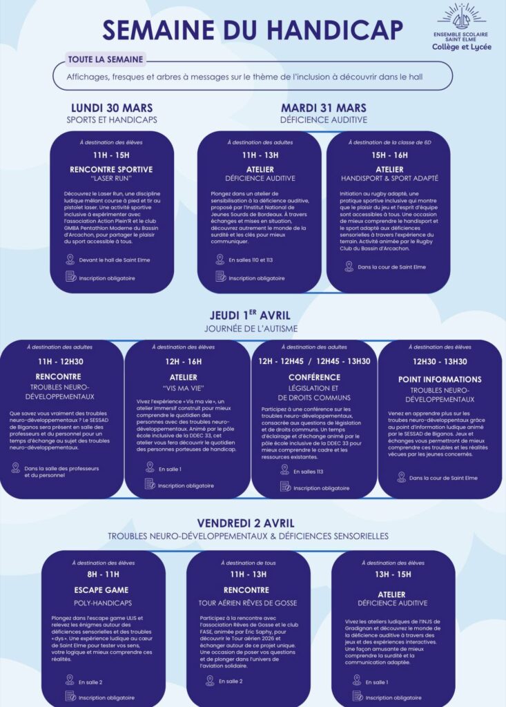 « Du 30 mars au 4 avril a e lieu « la semaine du handicap ». Divers évènements étaient organisés : ateliers, rencontre, conférence… » C.L.