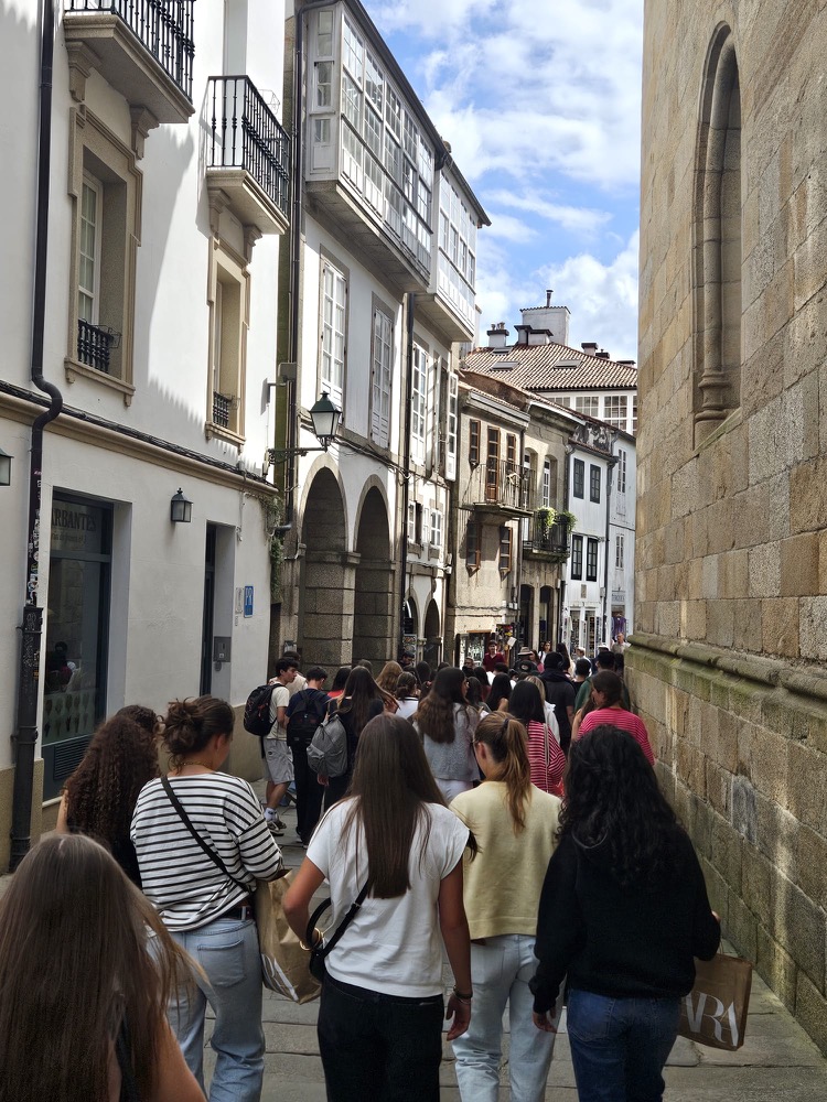 « Aujourd’hui, nous avons terminé notre semaine Erasmus en Espagne. Pour ce dernier jour, nous sommes allés à Madrid, où nous avons visité le Palais Royal et sa cathédrale. Ensuite, nous avons eu 30 minutes pour manger sur la Plaza Mayor avant de partir découvrir le musée du Prado. À la fin de la visite, nous avons dit au revoir à nos correspondants espagnols ainsi qu’aux élèves italiens, un moment à la fois joyeux et un peu triste. »
